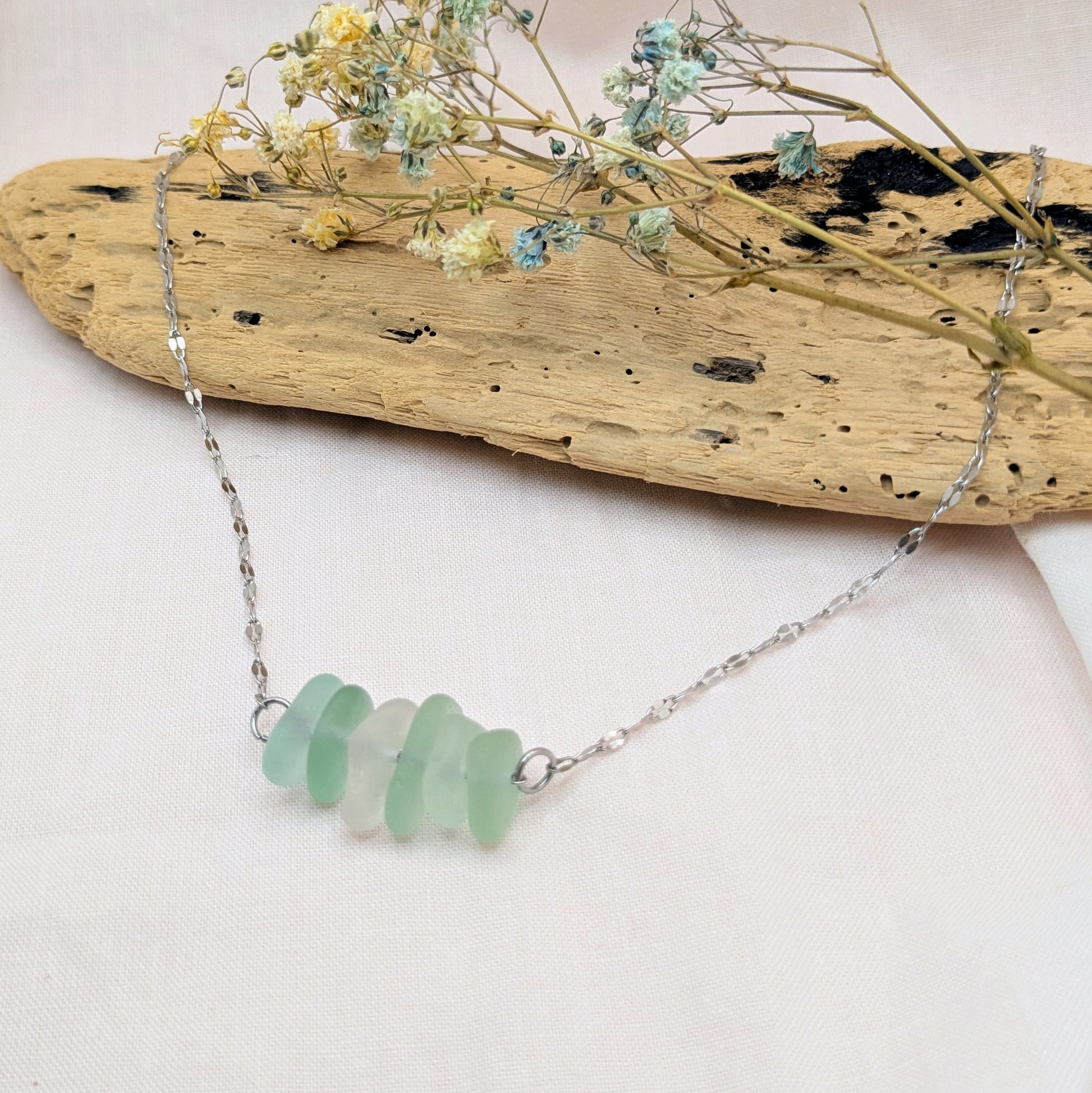 Beautiful sideways stack necklace handcrafted with Isle of Wight sea glass.